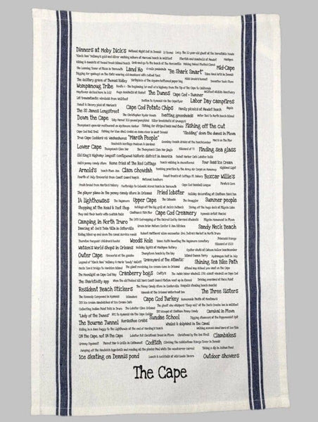 The perfect hostess gift! 100% cotton tea towel printed with all kinds of lore, trivia and nostalgia about the Cape. Keep several on hand so you're never caught off guard when you need that last minute but oh-so perfect gift for a friend! Towels measure approximately 14" x 24" and have your choice of red, blue or green or stripes.